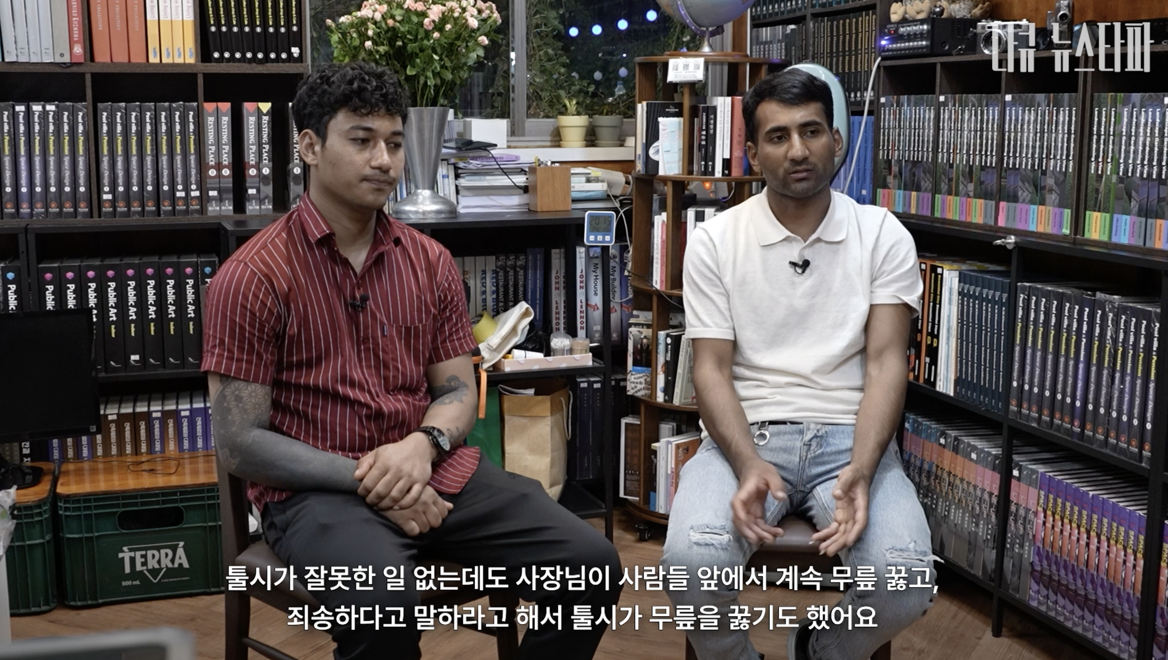 “(네팔인) 팀장이 일하는 게 마음에 안 든다고 사장에게 이르면, 사장이 따로 불러서 볼펜으로 찌르고, 돈도 안 주면서 잔업을 시켰어요. 여기에 항의하면 수시로 ‘네팔 돌아가라’고 협박했고요.” 뉴스타파와 만난 툴시의 동료 파원의 증언이다.