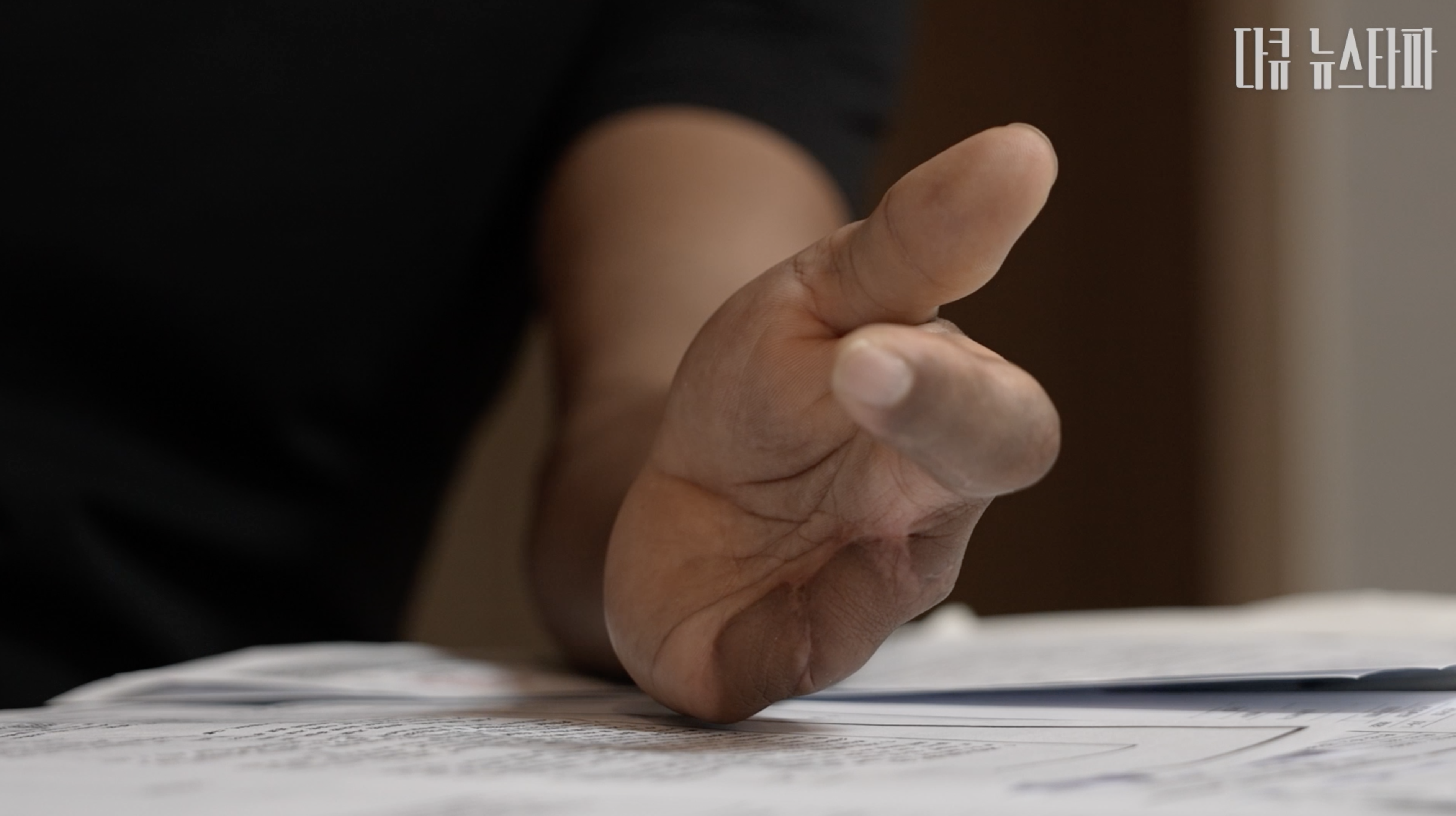 네팔 이주노동자 수메스는 2년 전인 2023년 1월 전북 완주의 한우농장에서 가동 중인 사료배합기에 손이 끼어 손가락 네 개가 절단되는 산재 사고를 당했다. 검지 손가락은 사료배합기 안에서 찾아내 접합했지만, 제 기능을 하지 못하는 상태다.