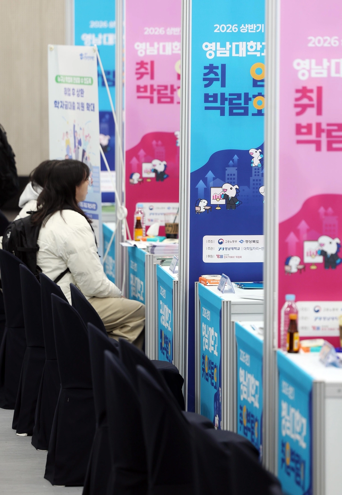 지난 11일 경상북도 경상시에 있는 영남대학교 경산캠퍼스 천마아트센터에서 열린 2026년 상반기 취업박람회에서 취업준비생들이 각 기업담당자와 취업 상담을 받고 있다. /연합뉴스