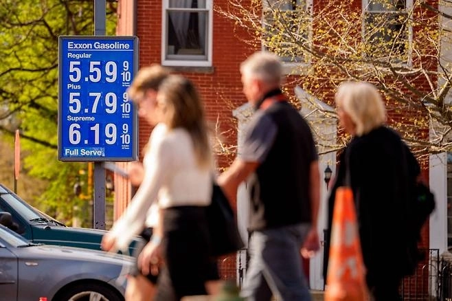 지난달 31일(현지 시간) 미국 워싱턴DC 국회의사당 인근의 한 주유소에 표시된 휘발유 가격. AFP연합뉴스